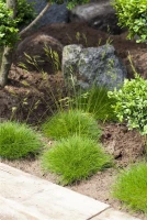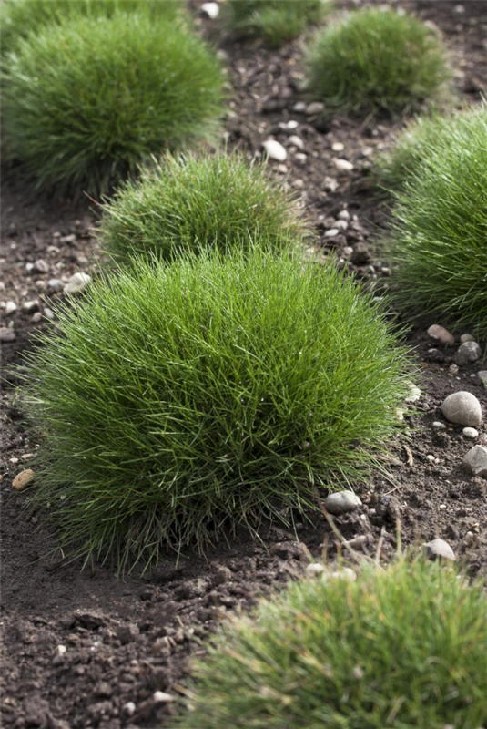 Der Bärenfell-Schwingel (Festuca gautieri) ist mit seiner dunkelgrünen Blattfärbung ein dekoratives Gestaltungselement im Garten, welches sich an einem sonnigen bis halbschattigen Standort mit einem möglichst durchlässigen Boden am wohlsten fühlt. Die gelb-grünen Blütenwedel schmücken die polsterbildend wachsende Pflanze ab Sommer. Bei günstigen Bedingungen erreicht dieses winterharte Gras eine Höhe von ca. 15 cm und wird bis zu 30 cm breit.