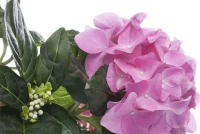 Hydrangea macrophylla, rosa ist ein Flachwurzler und bildet, je nach Boden, fein verzweigte Wurzeln.
