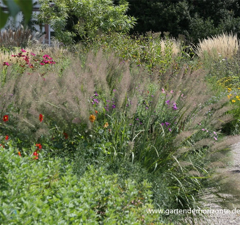 Die hellrosafarbenen Blüten des Diamant-Reitgras erscheinen in Rispen von August bis September.