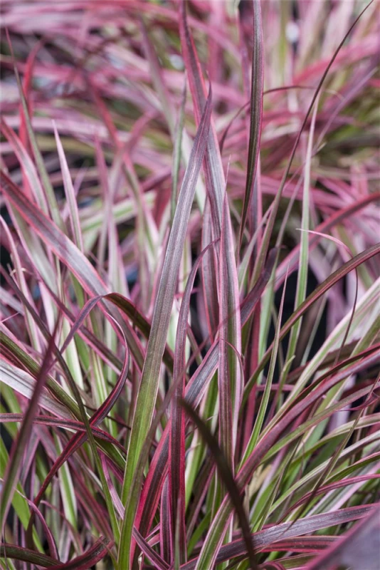 Die sommergrünen Blätter des Federborstengrases ‚Fireworks'(s) sind scharlachrot, lanzettlich.