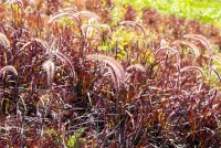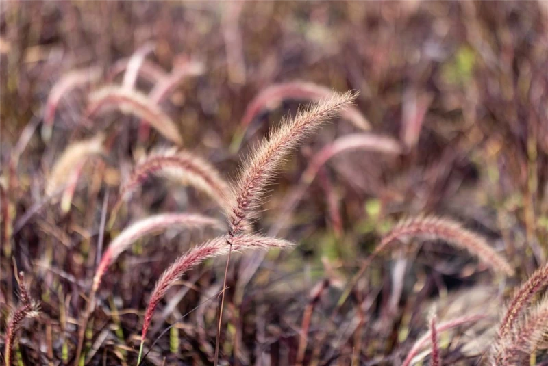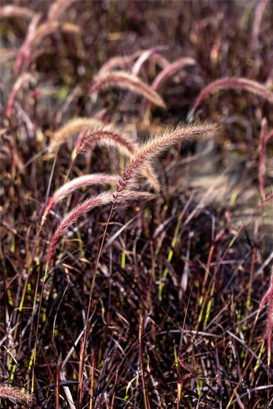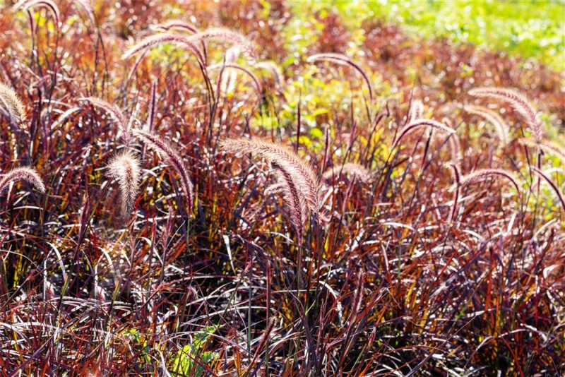 Das Federborstengras ‚Fireworks'(s) (Pennisetum setaceum) ist mit seiner scharlachroten Blattfärbung ein dekoratives Gestaltungselement im Garten, welches sich an einem sonnigen Standort mit einem möglichst durchlässigen, nährstoffreichen Boden am wohlsten fühlt. Die roten Blütenwedel schmücken die buschig und aufrecht wachsende Pflanze ab Sommer. Bei günstigen Bedingungen erreicht dieses Gras eine Höhe von ca. 65 cm und wird bis zu 50 cm breit.