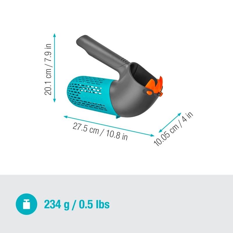 Der GARDENA combisystem-Beerensammler ist ein praktisches Werkzeug zum Pflücken von Beeren und Steinfrüchten. Er ist mit allen Stielen des GARDENA combisystems kompatibel und kann mit einem Teleskopstiel auch in der Höhe von 5m verstellt werden. Der Sammler verfügt über einen integrierten Korb mit einem Fassungsvermögen von 0,8 Litern.
