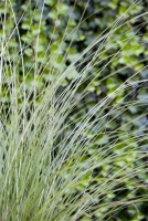 Die sommergrünen Blätter des Garten-Chinaschilfs ‚Gracillimus‘ sind mittelgrün, lineal. Garten-Chinaschilf ‚Gracillimus‘ zeigt sich leuchtend kupferbraun im Herbst.