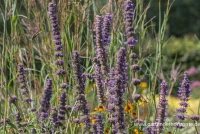 Die Garten-Duftnessel ‚Serpentine‘ (Agastache rugosa) ist eine aufrechte, horstbildende Staude, die von Juni bis September dunkellilafarbene, lippenförmige, in Ähren angeordnete Blüten mit einem angenehmen Duft bildet. An einem sonnigen Standort mit durchlässigem, sandigem Boden erreicht sie gewöhnlich eine Höhe von ca. 1,2 m und wird ca. 1 m breit. Die Garten-Duftnessel ‚Serpentine‘ ist an geschützten Standorten gut frostverträglich.