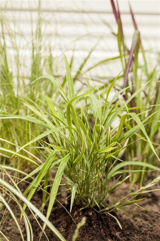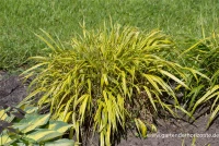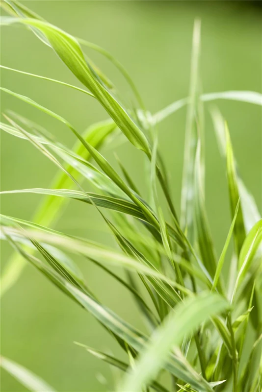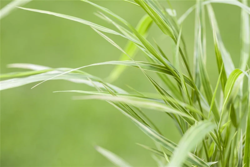 Das Garten-Ziergras ‚Aureola‘ (Hakonechloa macra) ist mit seiner gelb-grünen Blattfärbung ein dekoratives Gestaltungselement im Garten, welches sich an einem halbschattigen bis schattigen Standort mit einem möglichst durchlässigen, humosen Boden am wohlsten fühlt. Die grünen Blütenwedel schmücken die buschig und breit wachsende Pflanze ab Sommer. Bei günstigen Bedingungen erreicht dieses winterharte Gras eine Höhe von ca. 40 cm und wird bis zu 40 cm breit.