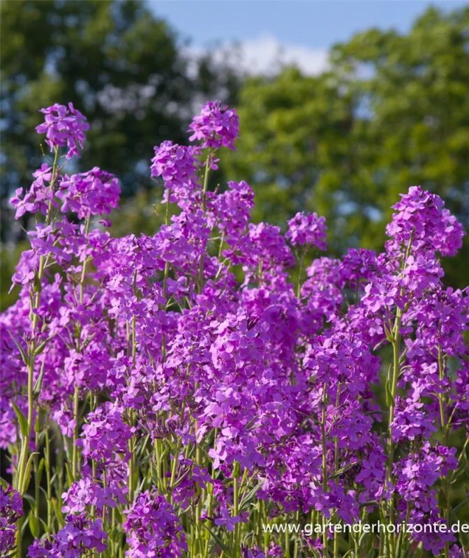 Hesperis matronalis bildet in Trauben angeordnete, violette Blüten ab Mai. Diese verströmen einen starken Duft.