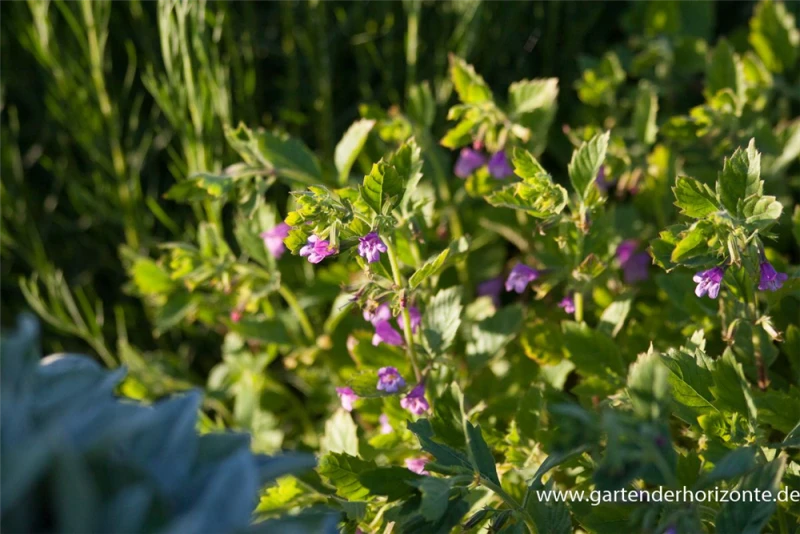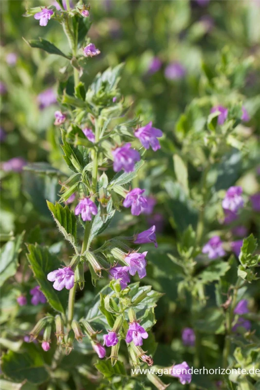 Calamintha grandiflora bildet lippenförmige, in Quirlen angeordnete, rosafarbene Blüten ab Mai. Diese verströmen einen angenehmen Duft.