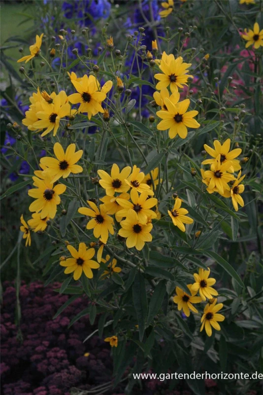 Das Hohe Mädchenauge (Coreopsis tripteris) bildet gelbe, ansehnliche Blüten von August bis September. Die Blüten sind körbchenartig.