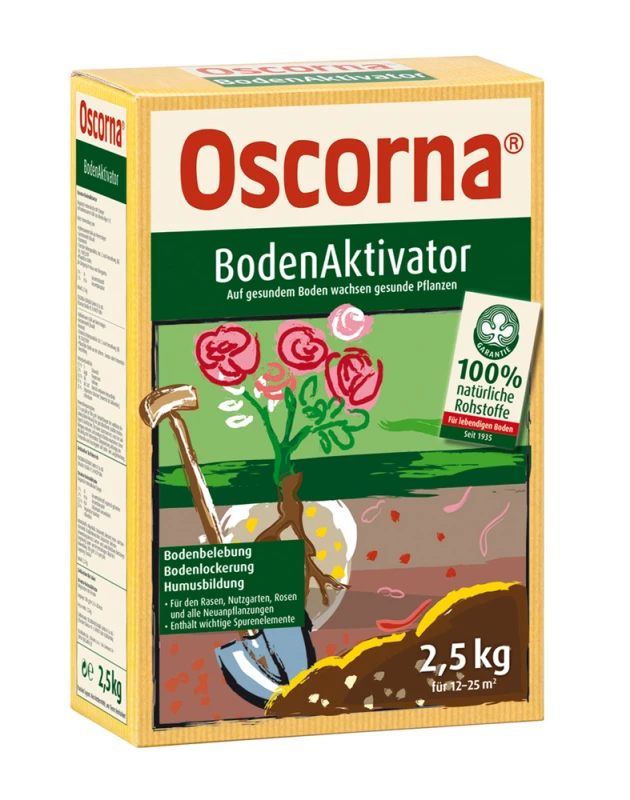 Organisch-mineralischer NP-Dünger 3-2 mit kohlensaurem Kalk aus Meeralgen. Dieser Bodenhilfsstoff macht die Böden fruchtbar und bildet Humus, aktiviert das Bodenleben. Der Regenwurmbestand erhöht sich und die Anzahl der Mikroorganismen nimmt rasch zu. Bewirkt die optimale Bindung und Abgabe von Nährstoffen, hält den Boden länger feucht und schützt vor Austrocknung. Fördert das biologische Gleichgewicht und sorgt für dauerhafte Bodenfruchtbarkeit. Anwendung: Anwendung ganzjährig, 2-3 x pro Jahr je 150 – 200 g/qm. Bei stark ausgelaugten Böden streut man 200 g/qm.
