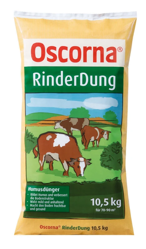Oscorna-Rinderdung enthält von Natur aus 2,5% Stickstoff, 2 % Phosphorsäure, ca. 2% Kali, sowie Magnesium, Kalk und eine Vielzahl von Spurenelementen. Regelmäßige Anwendungen führen bei allen Gartenkulturen zu gesunden Pflanzen und reichen Erträgen. Anwendung: Kann von Frühjahr bis Herbst ausgebracht werden.