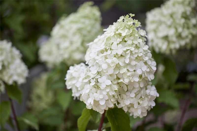 Die weißen, später rosafarbenen Blüten der Rispenhortensie ‚Polar Bear‘ erscheinen in Rispen von Juli bis September. Diese sind angenehm duftend.